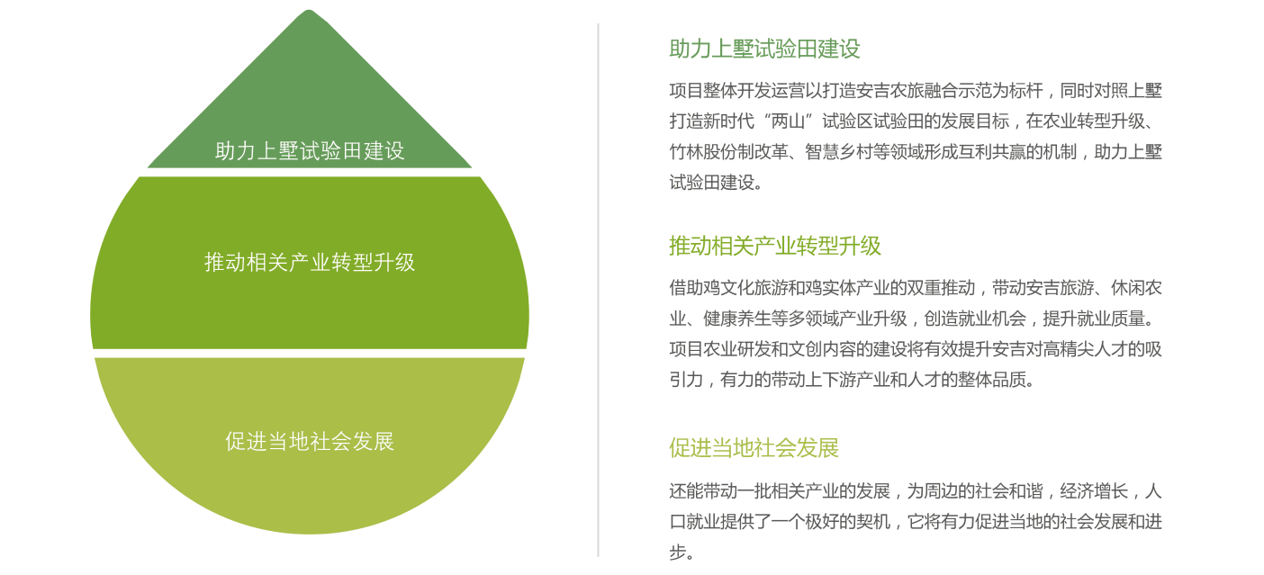 依托生态养殖场、田园、竹林等产业资源,使村民转化为产业工人, 投入 到整个产业链的生产过程中,纳入到整个牧场的运营管理之中 乡村参与方式:直接雇佣为员工 村民收益方式:工资